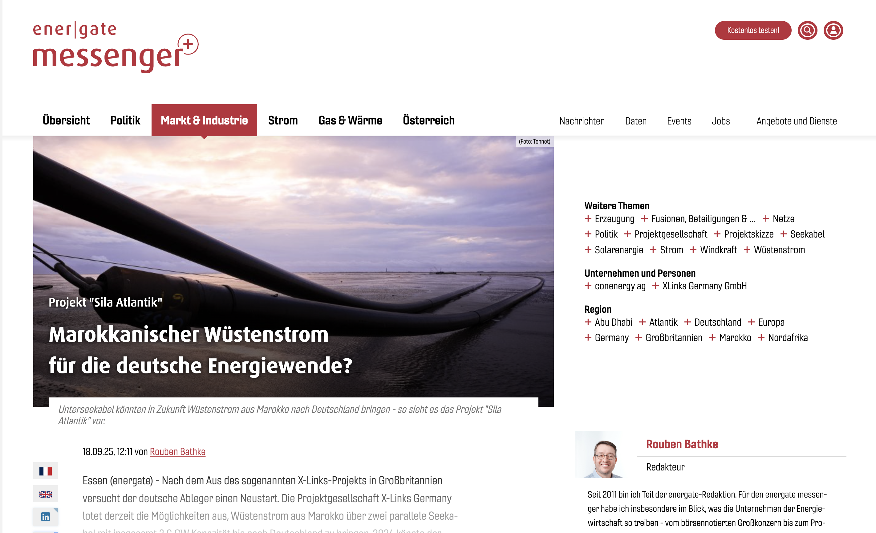 Sila Atlantik is an intercontinental energy project that is planning to exchange renewable power between Morocco and Germany via two high-voltage direct current (HVDC) subsea cables.
